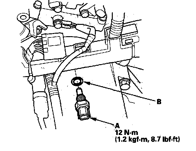 4. Install the sensor in the reverse order of removal with a new O-ring (B).