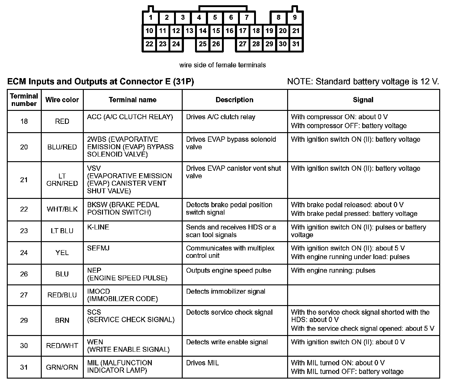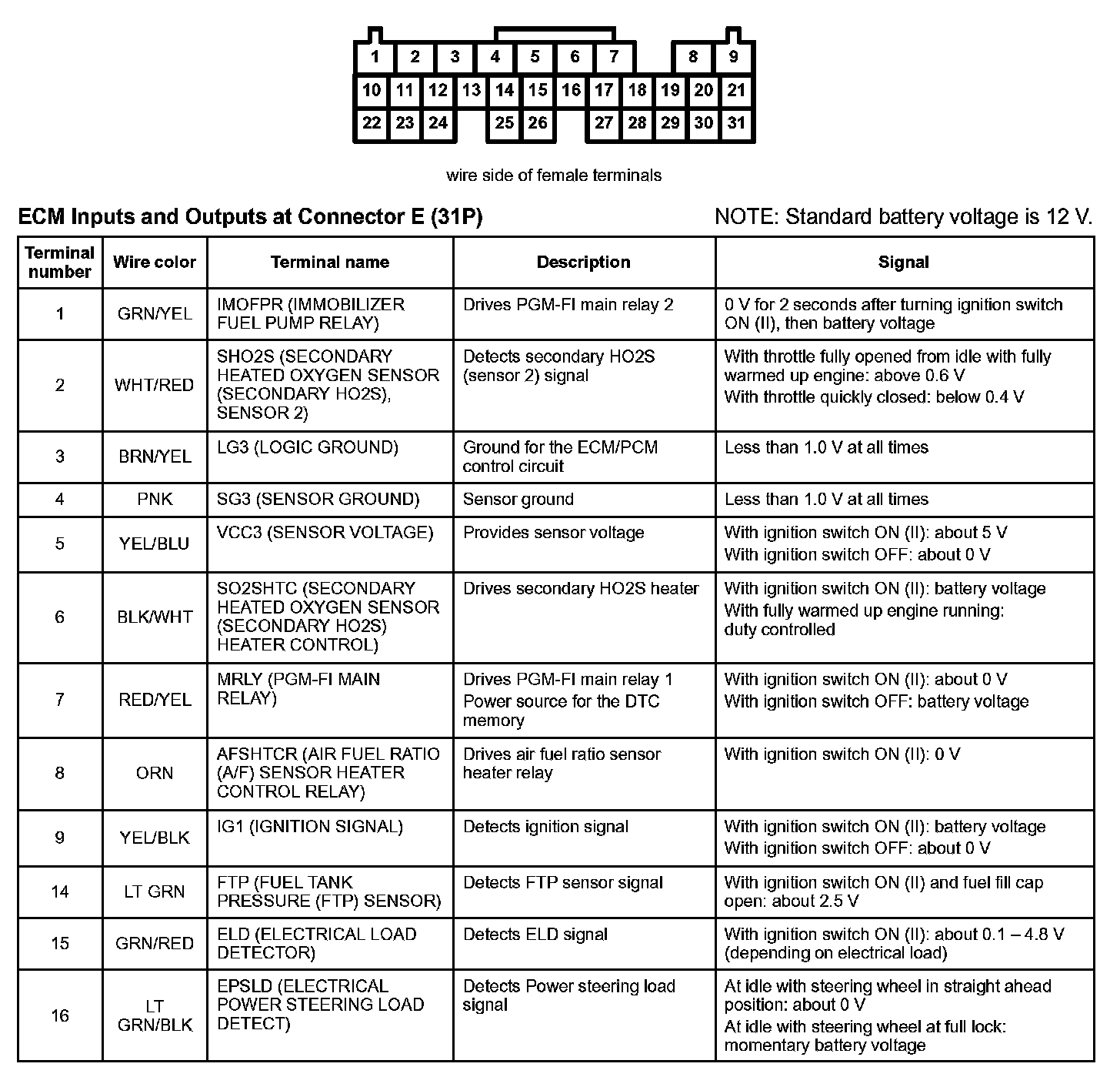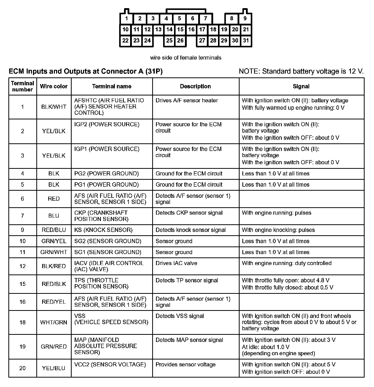 ECM Inputs And Outputs At Connector A (31P) Part 1: