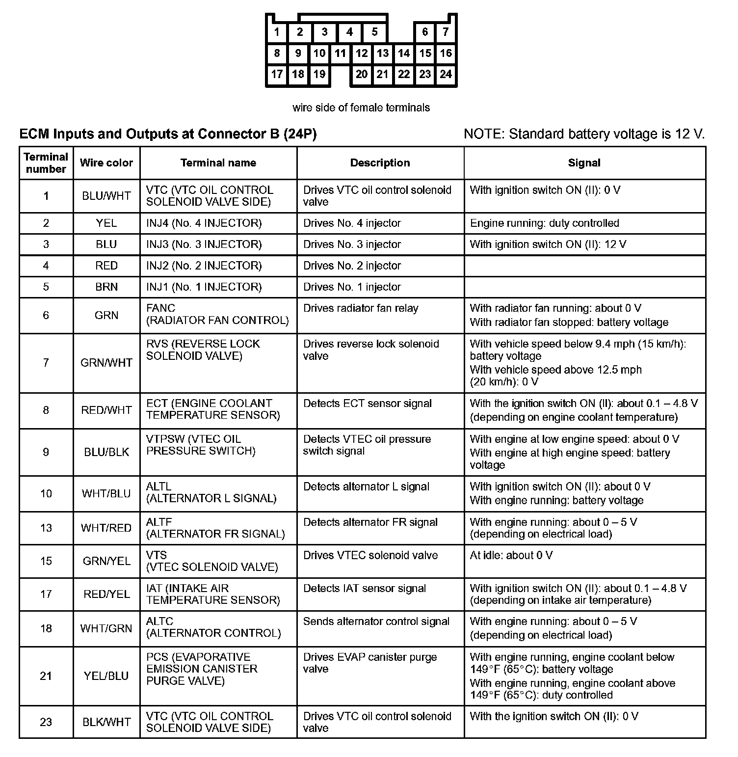 ECM Inputs And Outputs At Connectors B (24P):