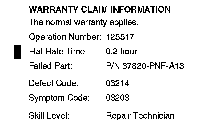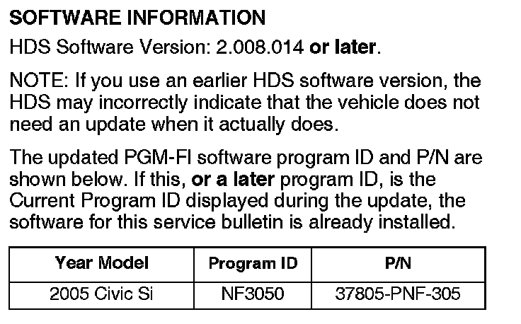 1. Update the PGM-FI software with the HDS. Refer to Service Bulletin 01-023, Updating Control Units/ Modules.