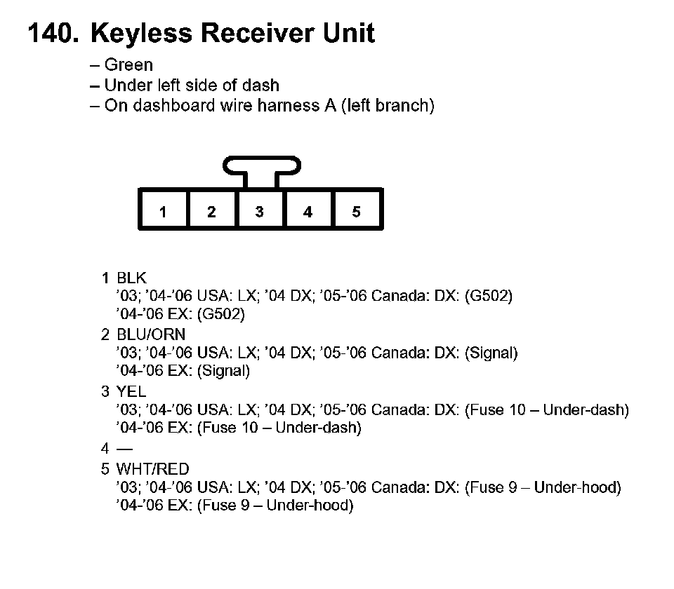140. Keyless Receiver Unit: