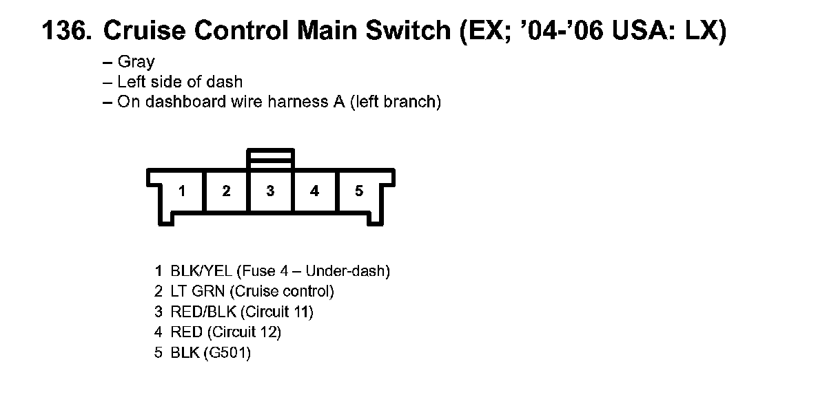 136. Cruise Control Main Switch (EX; '04-'06 USA: LX):