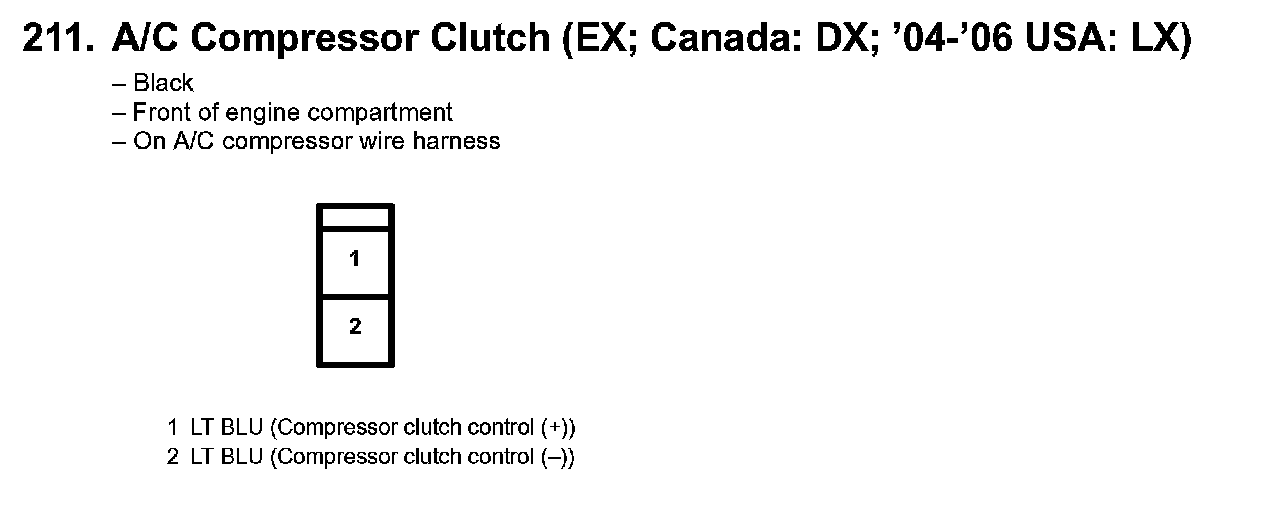 211. A/C Compressor Clutch (EX; Canada: DX; '04-'06 USA: LX):