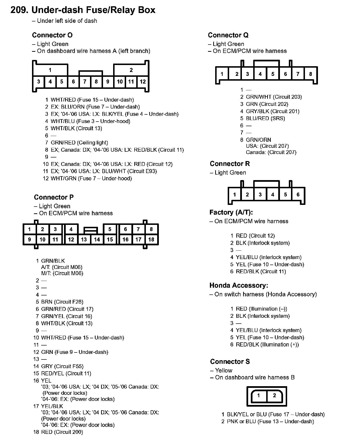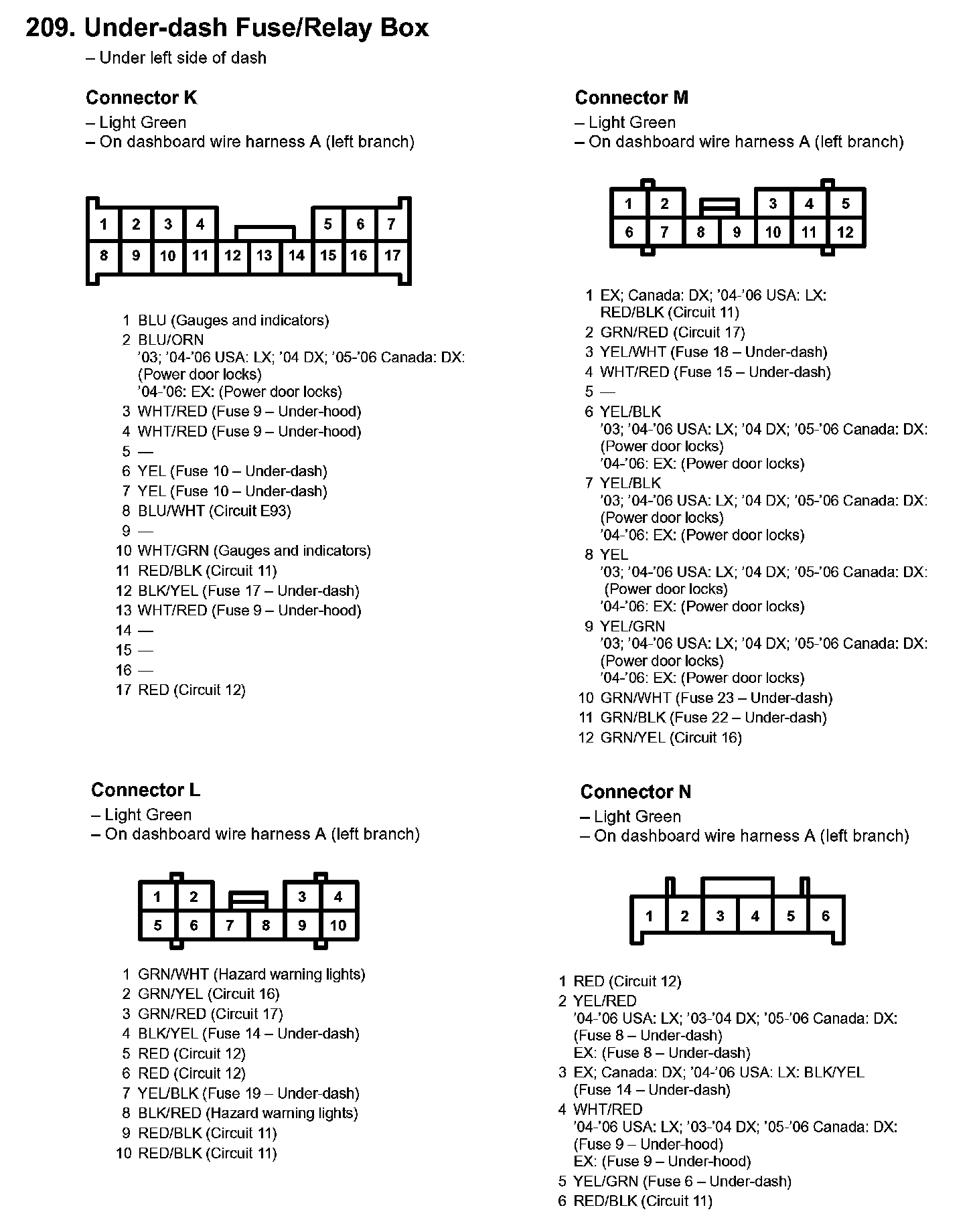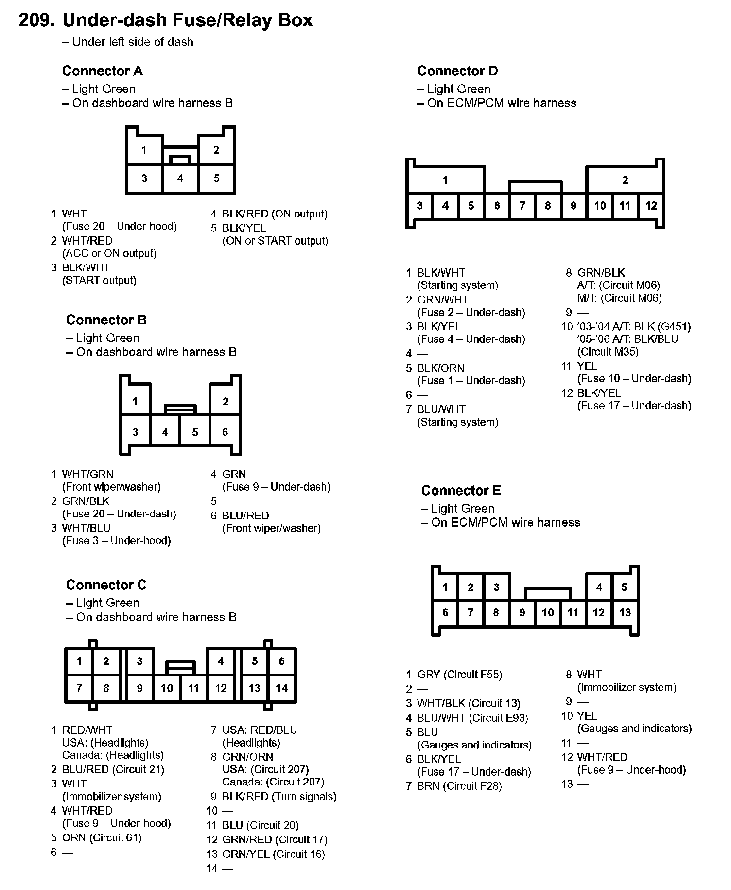 209. Under-dash Fuse/Relay Box: