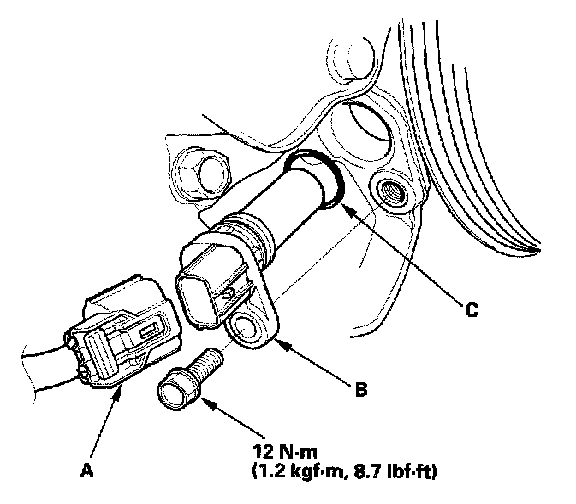 Install the sensor in the reverse order of removal with a new O-ring (C).