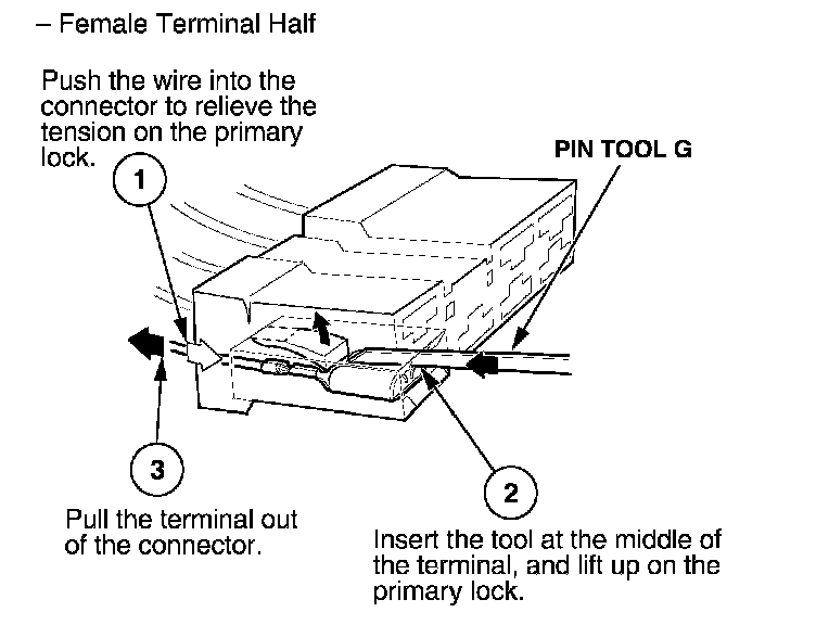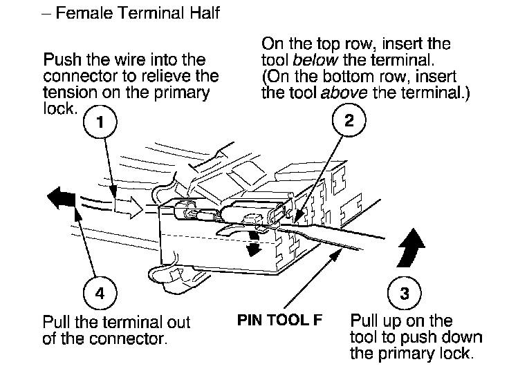 Home >> Honda >> 2005 >> Element 2WD L4-2.4L >> Repair and Diagnosis >> Powertrain Management >> Computers and Control Systems >> Engine Control Module >> Diagrams >> Diagnostic Aids >> Terminal Replacement Procedures >> How to Replace Connector Terminals