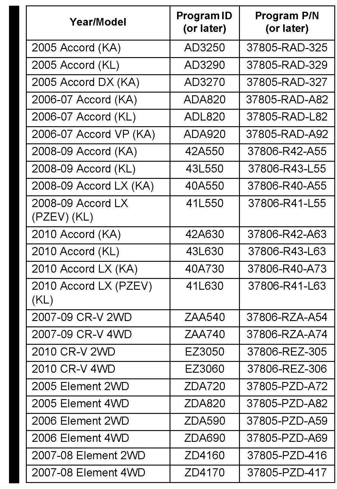 2005-08 Element - Check the iN VIN status for eligibility