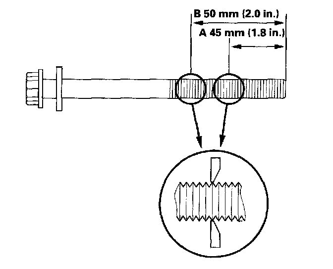If either diameter is less then 10.6 mm (0.42 in) replace the cylinder head bolt