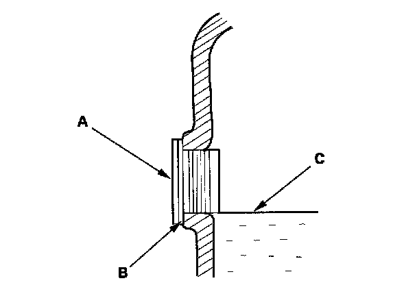 2. Remove the oil filler plug (A) and sealing washer (B), then check the condition of the fluid, and make sure the fluid is at the proper level (C).
