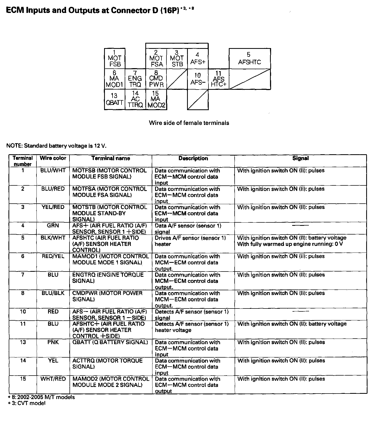 ECM Inputs And Outputs At Connector D (16P):