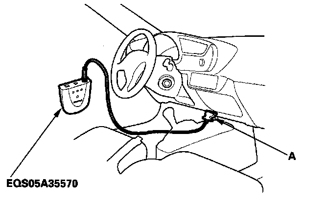 2. Connect the HDS or the Honda interface module (HIM) to the data link connector (DLC) (A) located under the driver's side of dashboard.