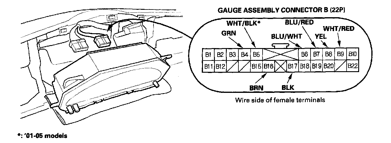 2. Disconnect the 22P connector from the gauge assembly.