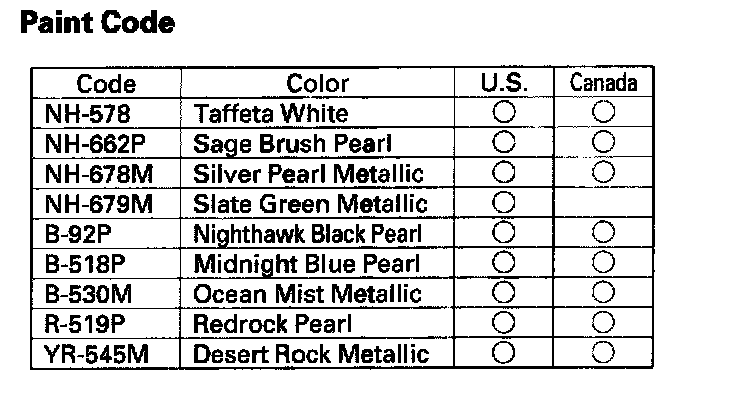 Chassis And Paint Codes - Paint Code: