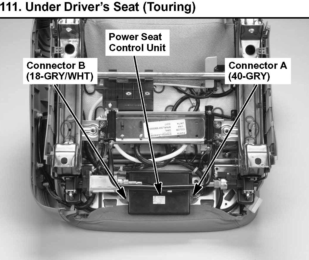 111. Under Driver's Seat (Touring):