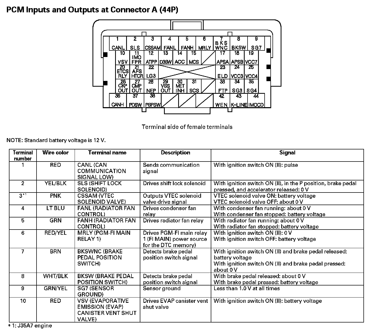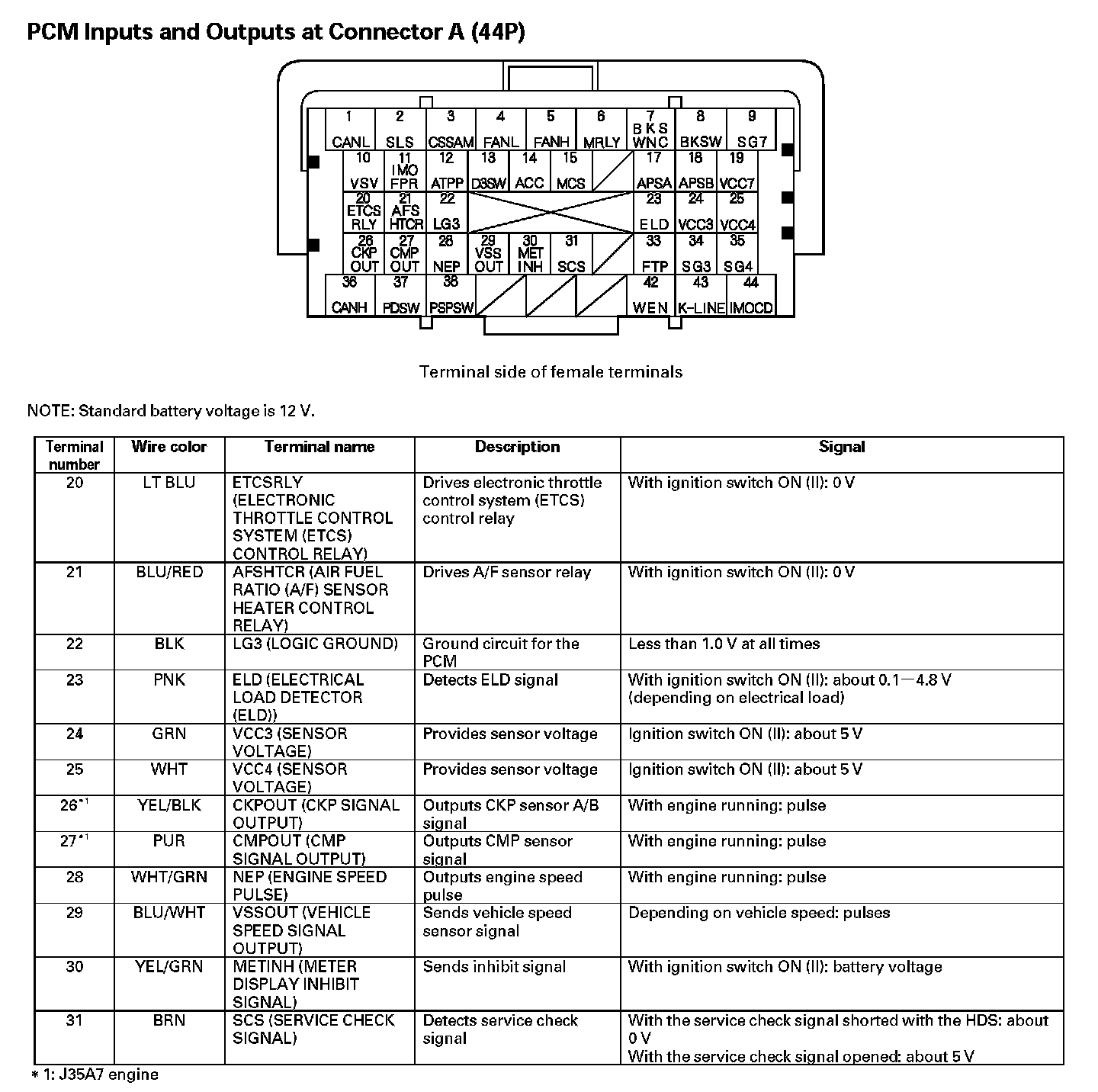 PCM Inputs And Outputs At Connector A (44P) Part 1: