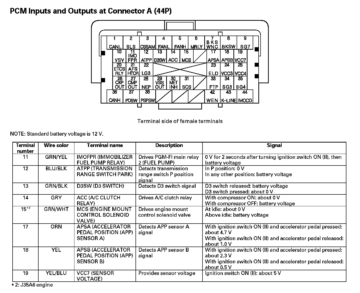 PCM Inputs And Outputs At Connector A (44P) Part 3: