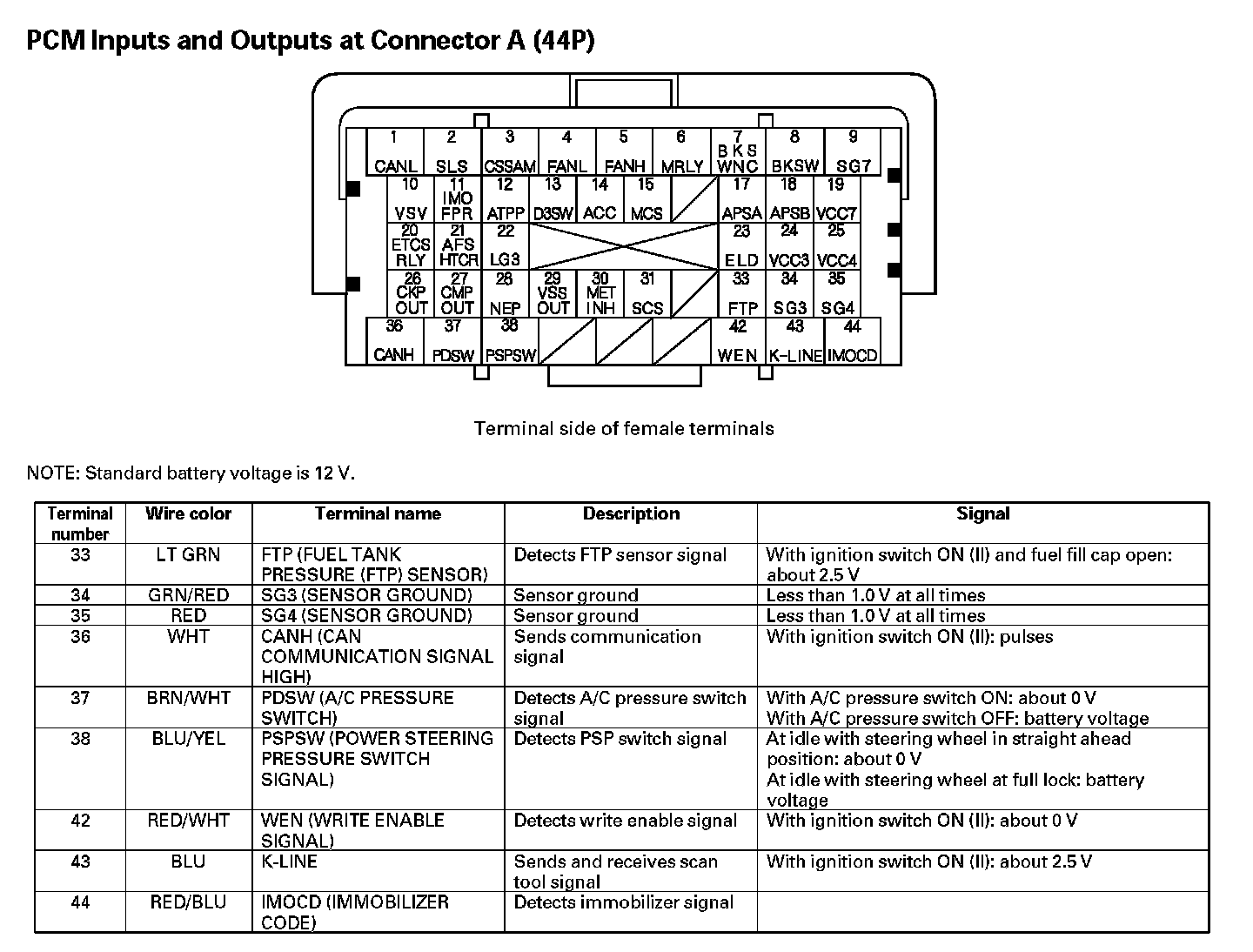 PCM Inputs And Outputs At Connector A (44P) Part 4: