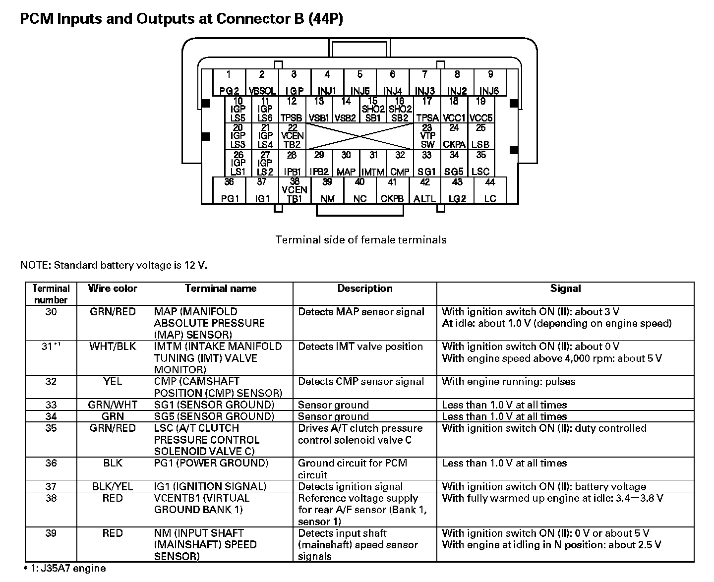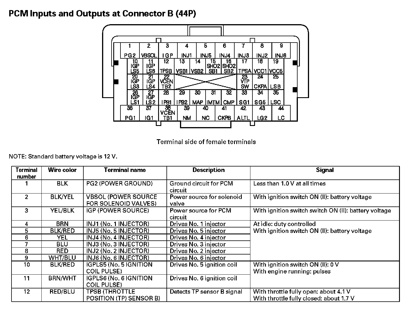 PCM Inputs And Outputs At Connector B (44P) Part 1: