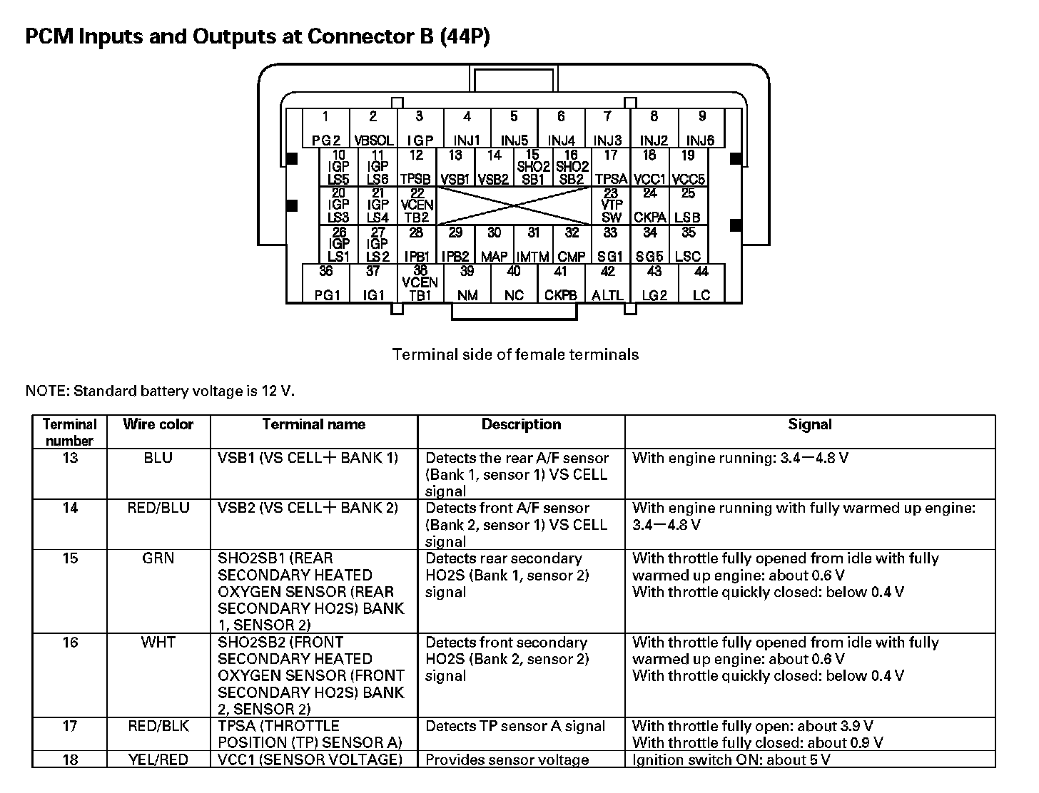 PCM Inputs And Outputs At Connector B (44P) Part 3: