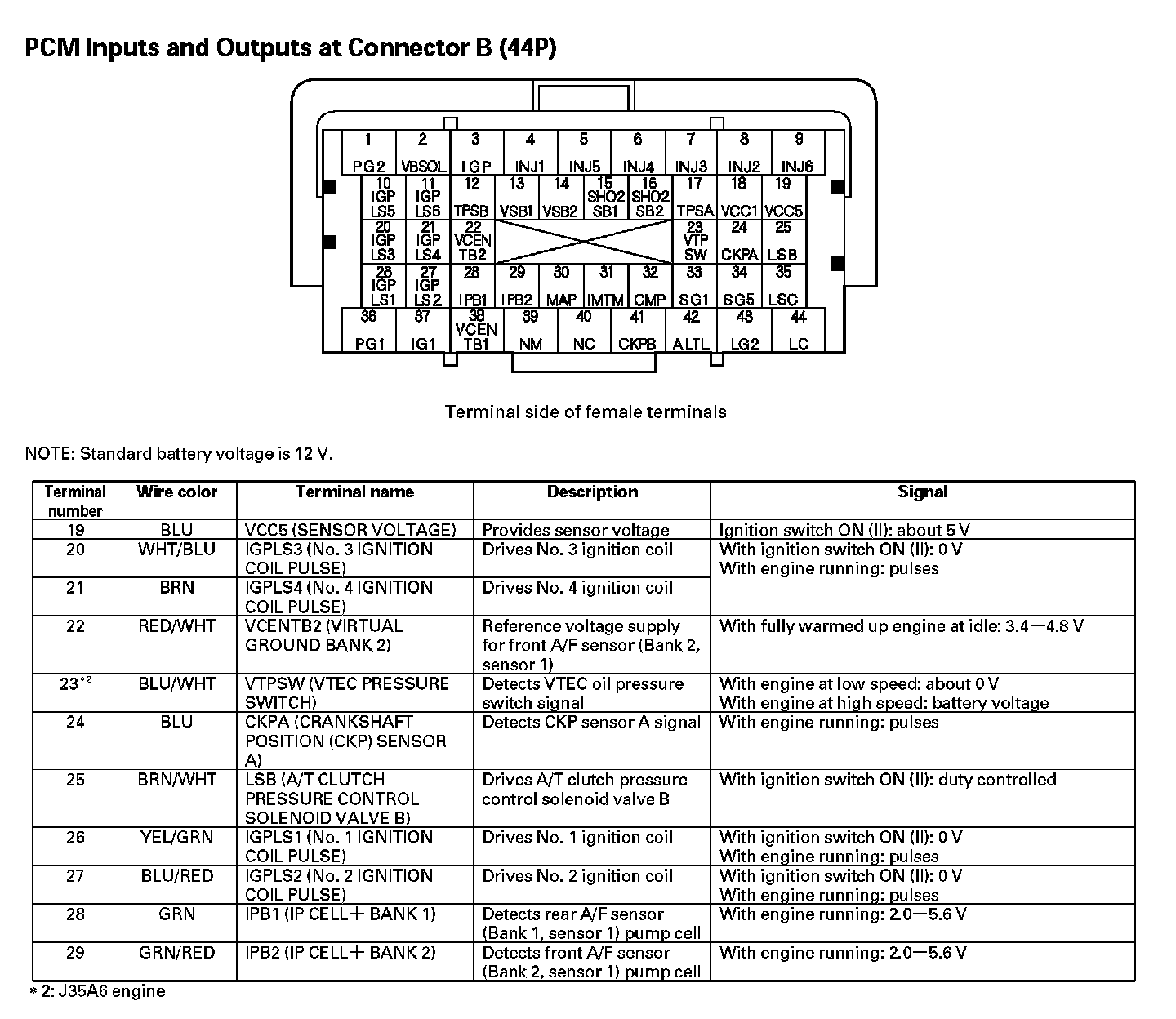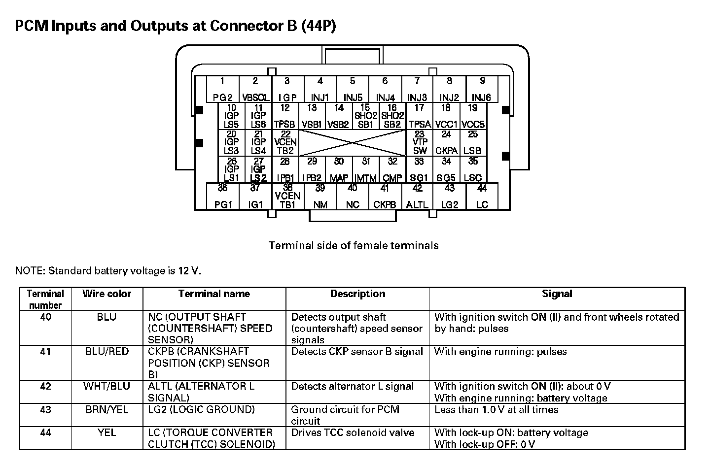 PCM Inputs And Outputs At Connector B (44P) Part 4: