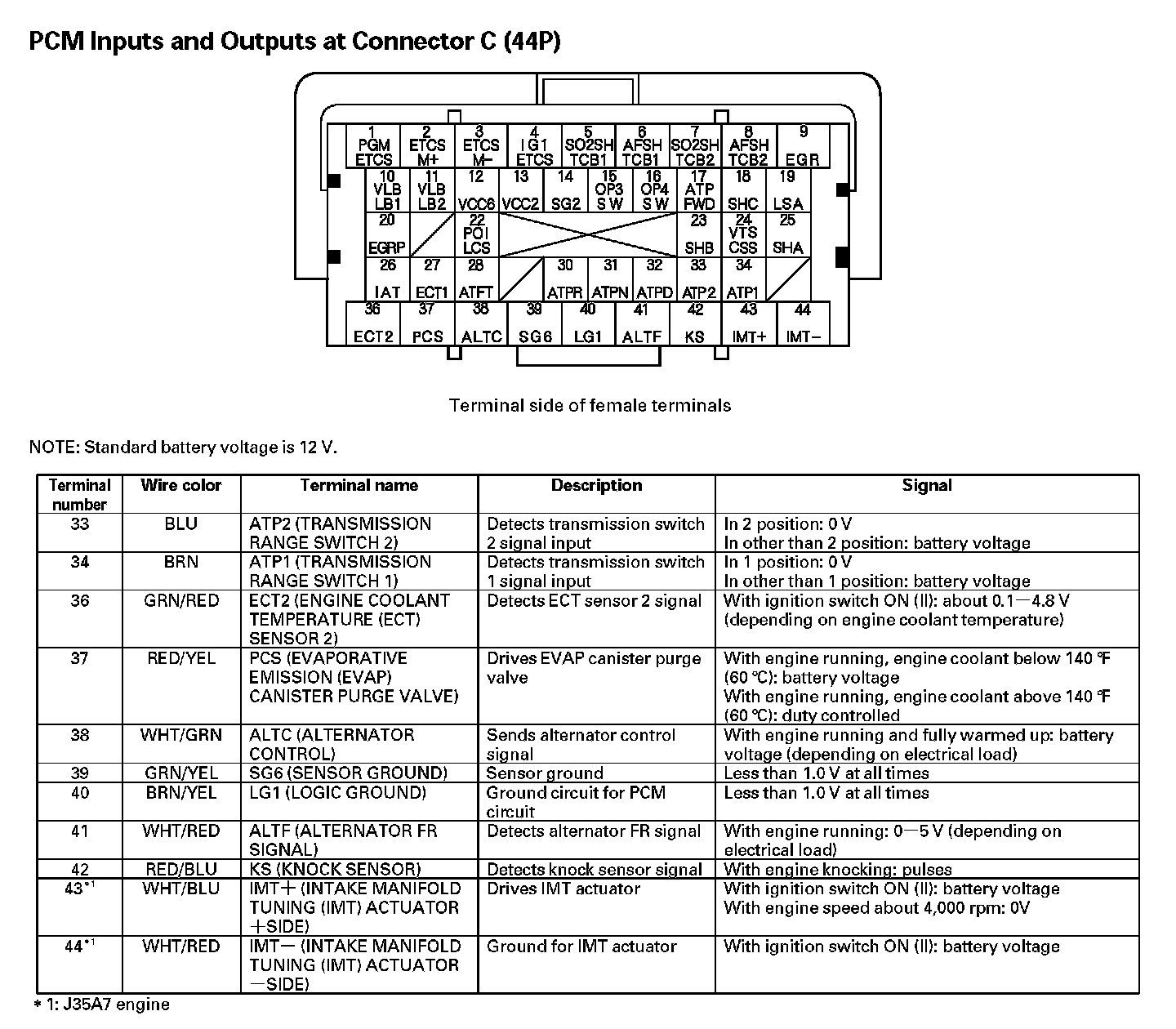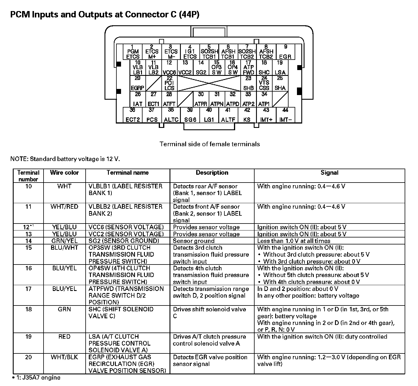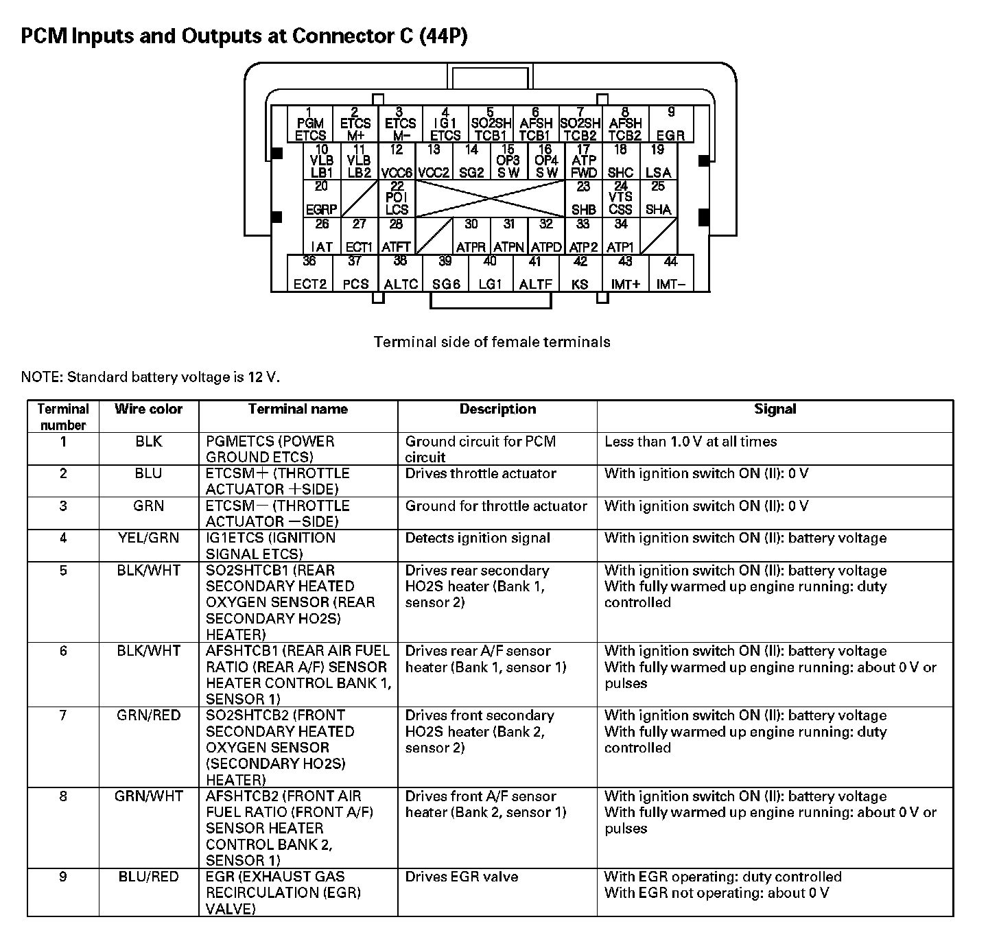 PCM Inputs And Outputs At Connector C (44P) Part 1: