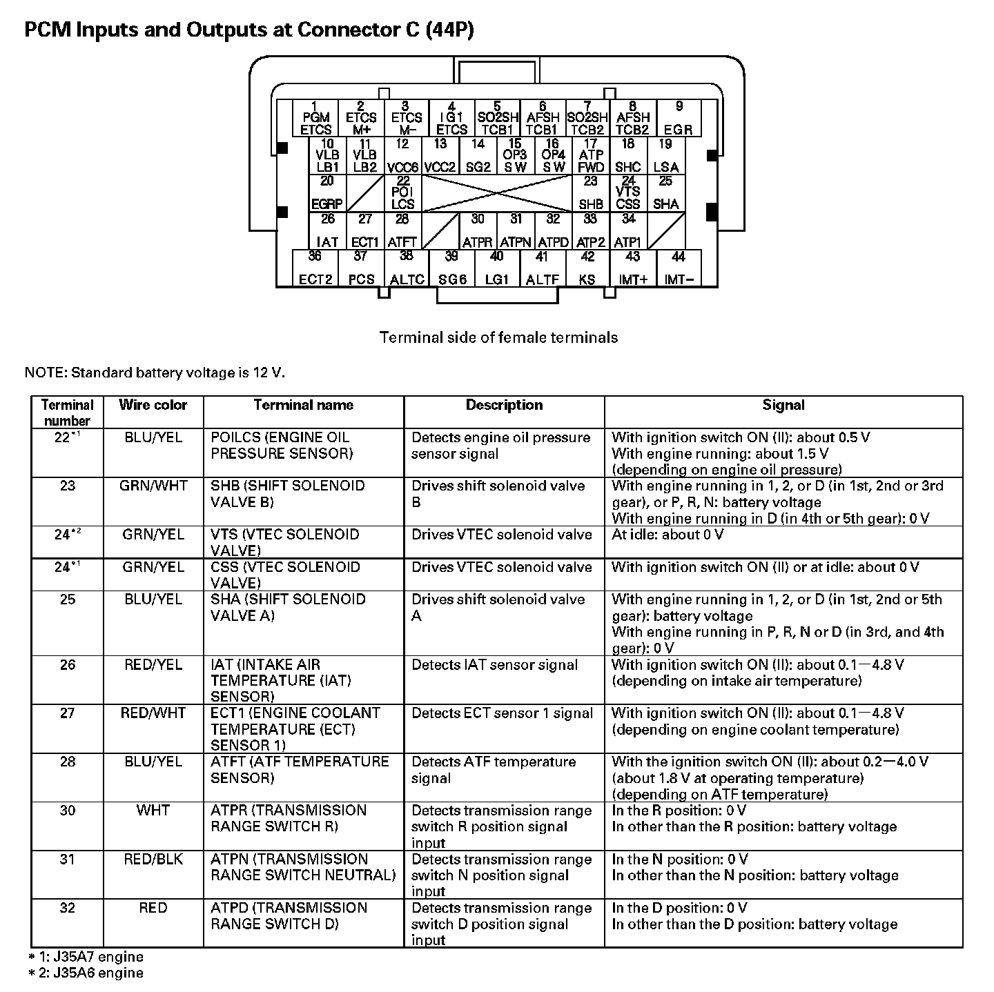PCM Inputs And Outputs At Connector C (44P) Part 2: