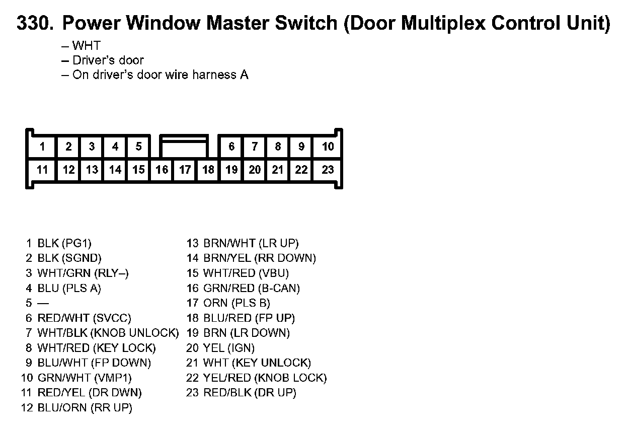 330. Power Window Master Switch (Door Multiplex Control Unit):