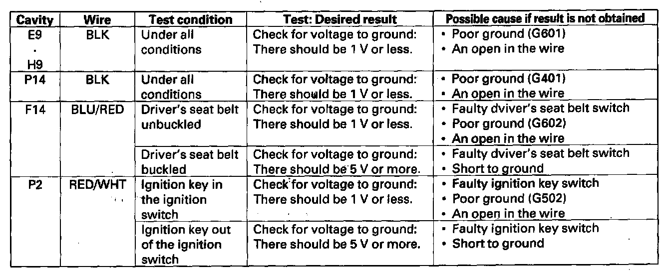 - If the beeper sounds and the seat belt reminder light flashes, go to step 14.