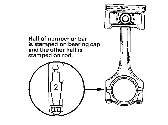 Numbers or bars have been stamped on the side of each connecting rod as a code for the size of the big end. Use them, and the letters or bars stamped on the crank (codes for rod journal size), to choose the correct bearings. If the codes are indecipherable because of an accumulation of dirt and dust, do not scrub them with a wire brush or scraper. Clean them only with solvent or detergent.