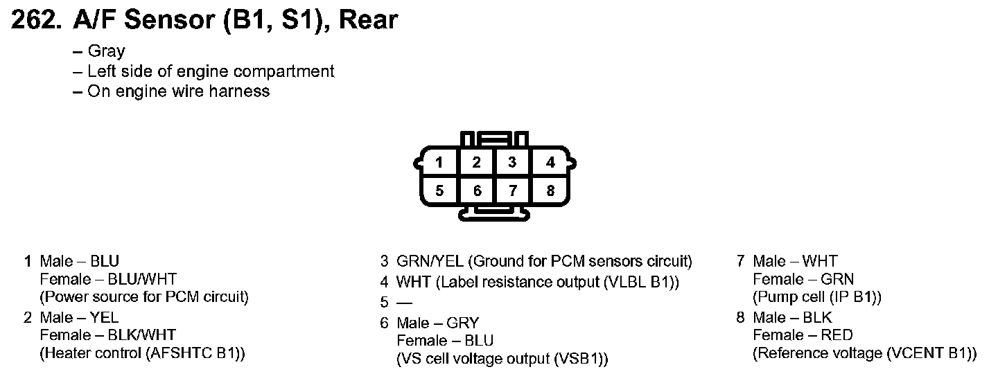 262. A/F Sensor (B1, S1) Rear: