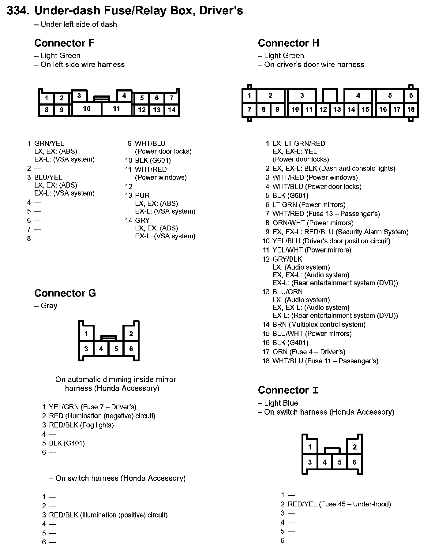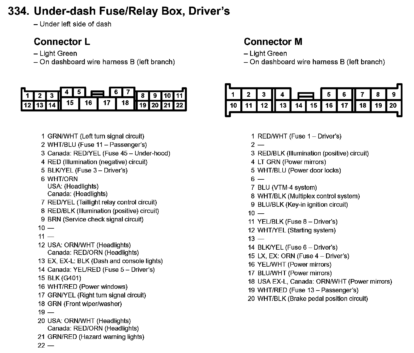 334. Under-dash Fuse/Relay Box, Driver's Part 1: