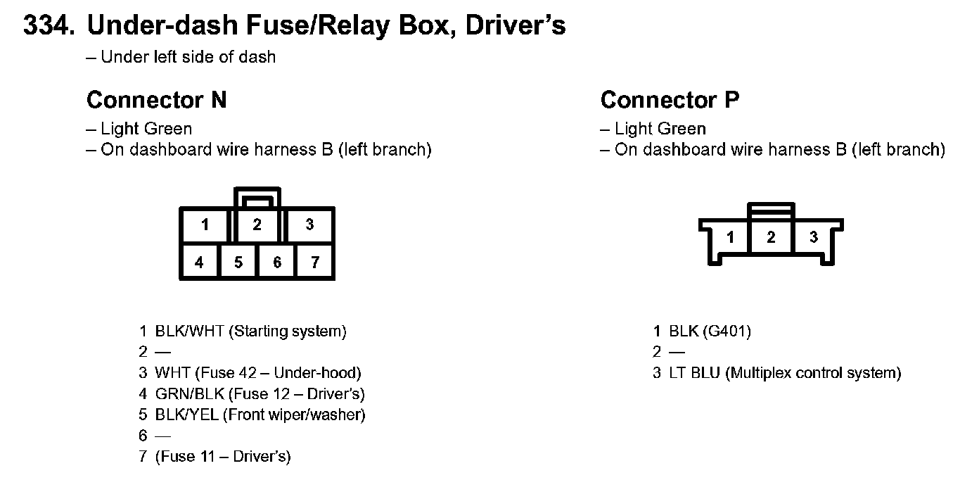 334. Under-dash Fuse/Relay Box, Driver's Part 2:
