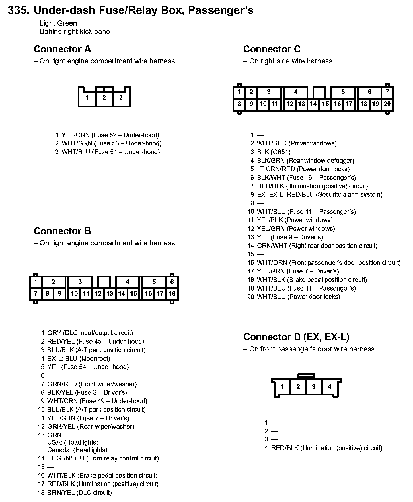 335. Under-dash Fuse/Relay Box, Passenger's Part 4: