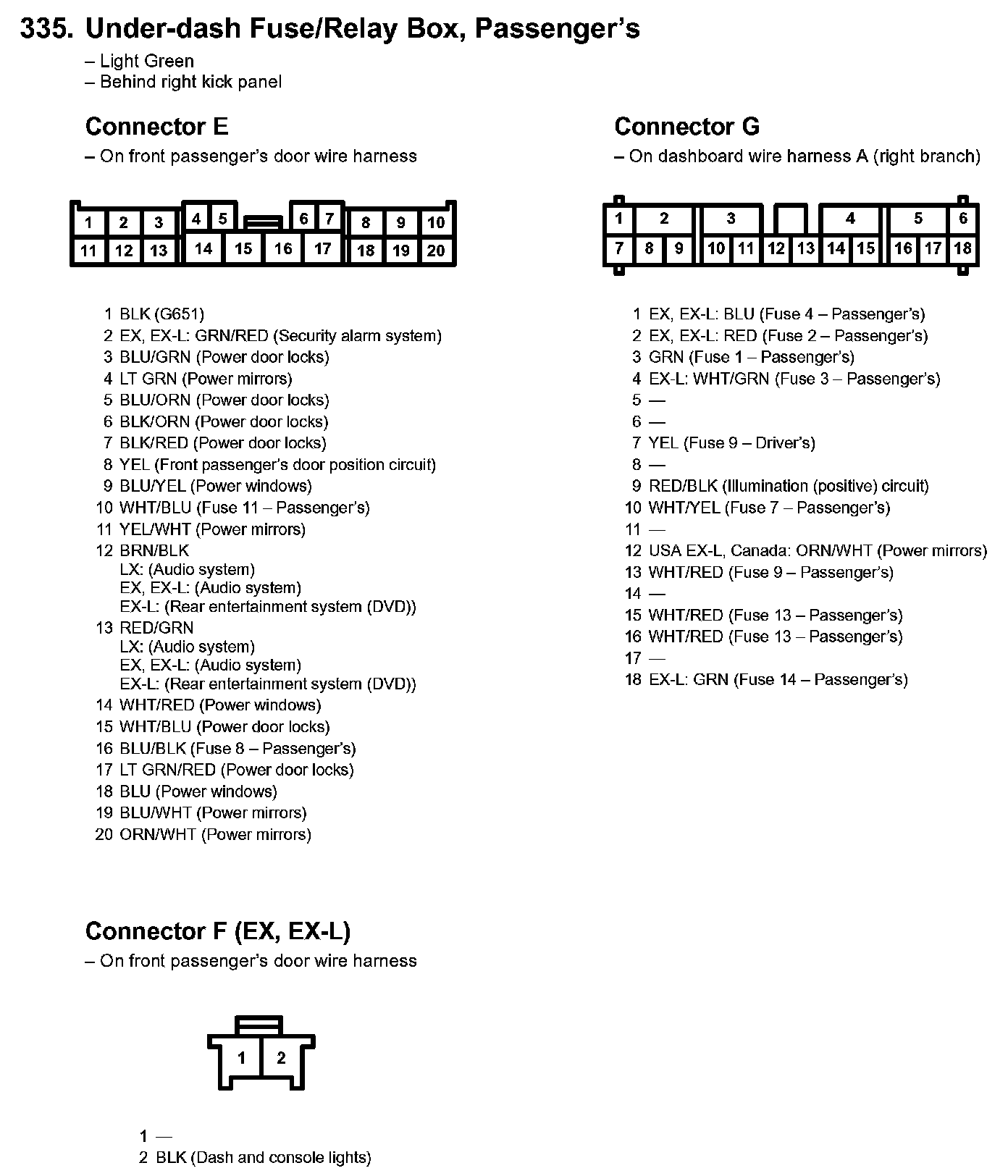 335. Under-dash Fuse/Relay Box, Passenger's Part 2: