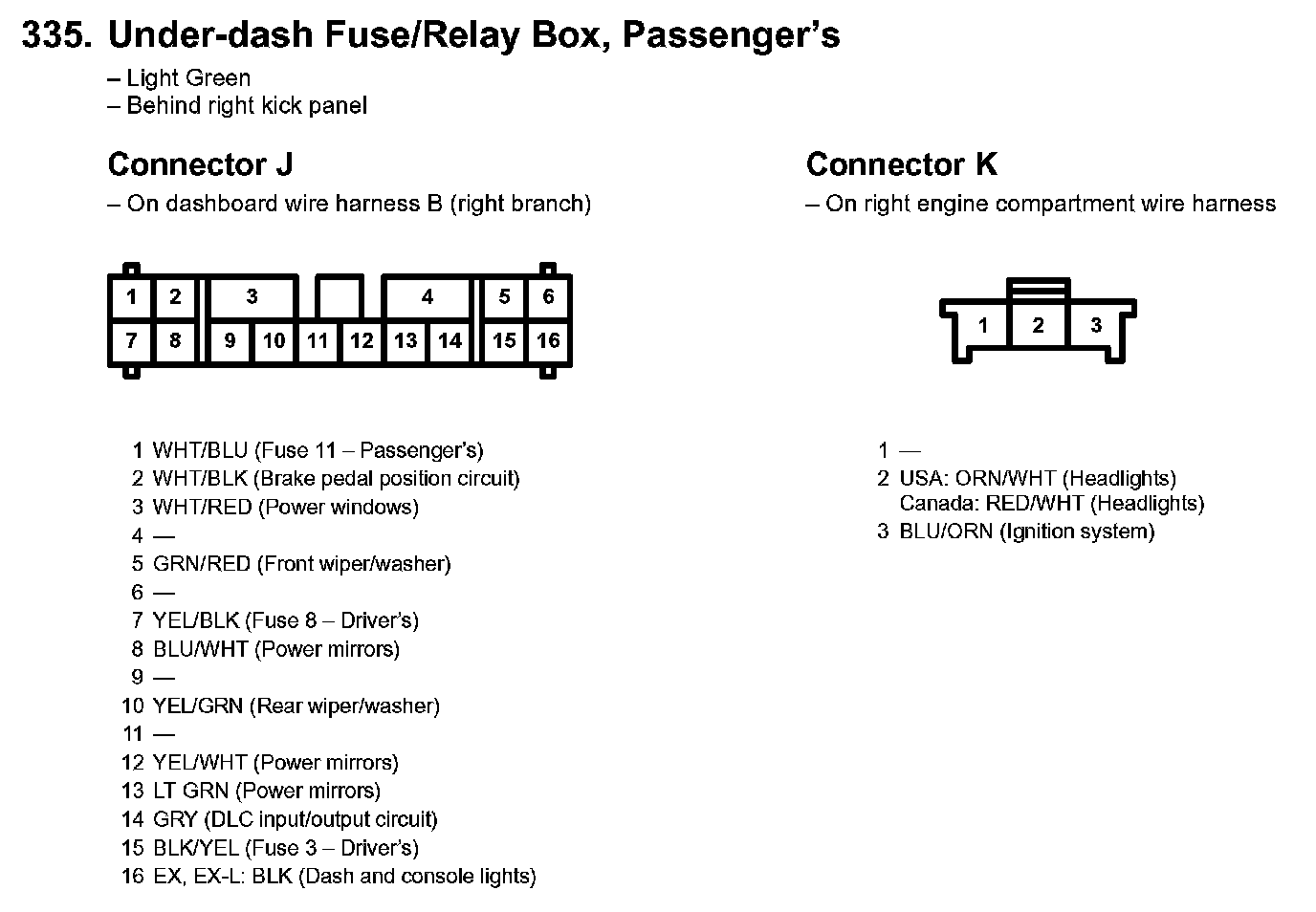335. Under-dash Fuse/Relay Box, Passenger's Part 3:
