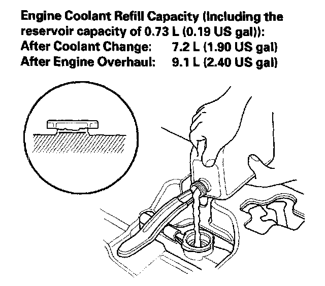 18. Check the level in the radiator, and add Honda All Season Antifreeze/Coolant Type 2, if needed.