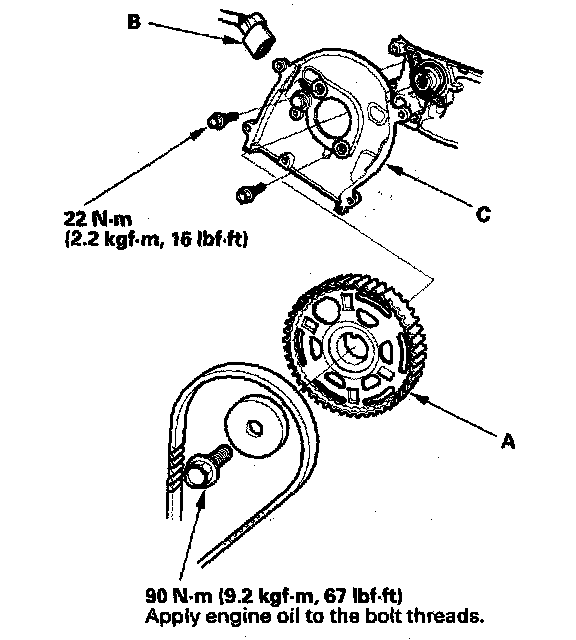 3. Disconnect the CMP sensor connector (B), then remove the back cover (C).