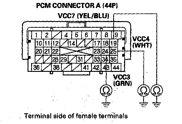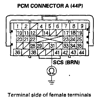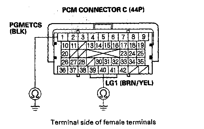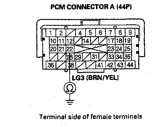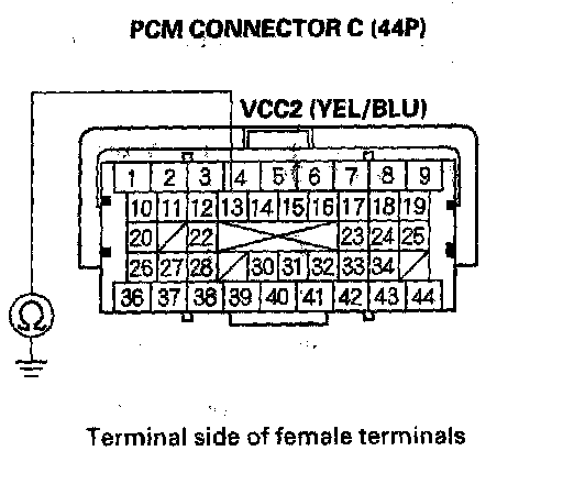 15. Disconnect PCM connector A (44P).