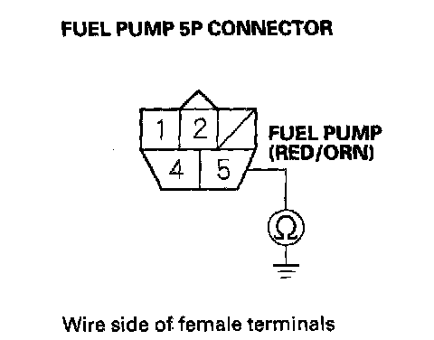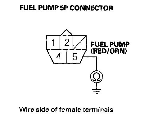 43. Check for continuity between fuel pump 5P connector terminal No.5 and body ground.