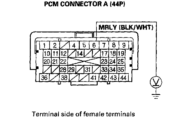 48. Measure voltage between PCM connector terminal A6 and body ground.