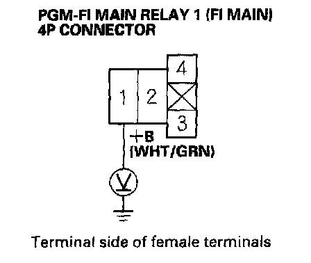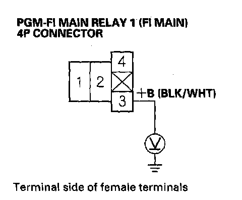 60. Measure voltage between PGM-FI main relay 1 (FI MAIN) 4P connector terminal No.1 and body ground.