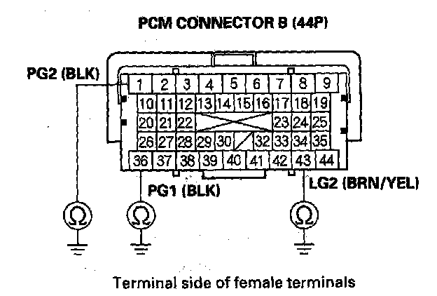 34. Disconnect PCM connector B (44P).