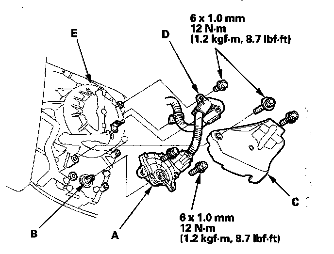 9. Install the transmission range switch cover (C), and the harness holder (D) on the end cover (E).