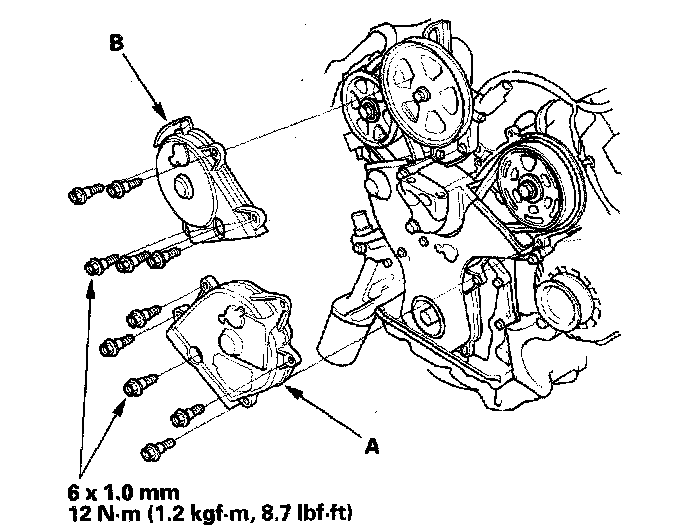 Install the front upper cover (A) and rear upper cover (B).