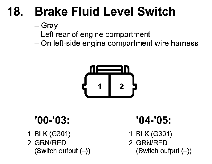 18. Brake Fluid Level Switch: