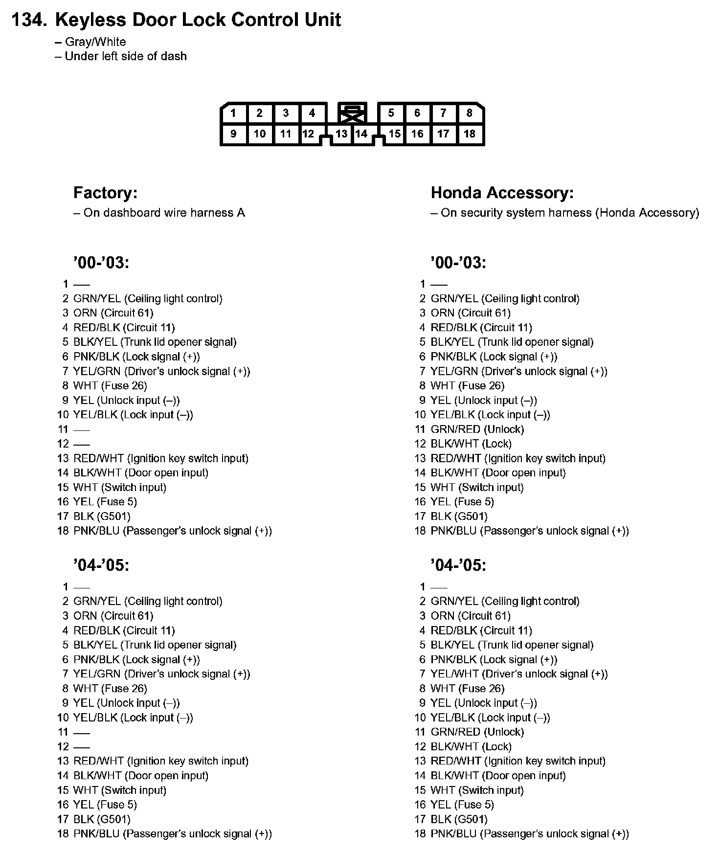 134. Keyless Door Lock Control Unit: