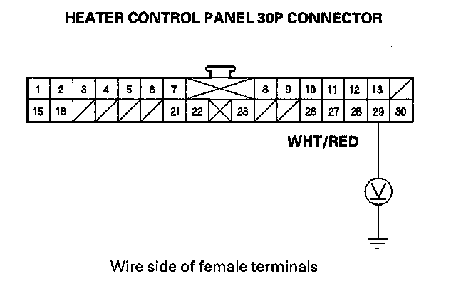 6. Measure the voltage between the No.29 terminal of the heater control panel 30P connector and body ground.