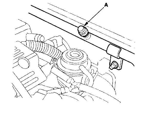 8. Remove the bleed cap (A) from the heater bypass tube.