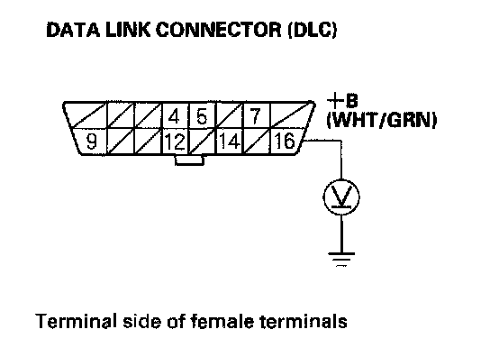 2. Measure voltage between DLC terminals No. 4 and No.16.