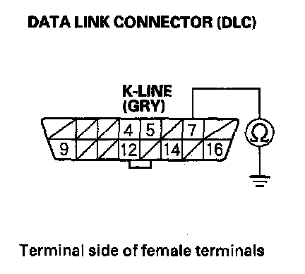 8. Check for continuity between DLC terminal No. 7 and body ground.